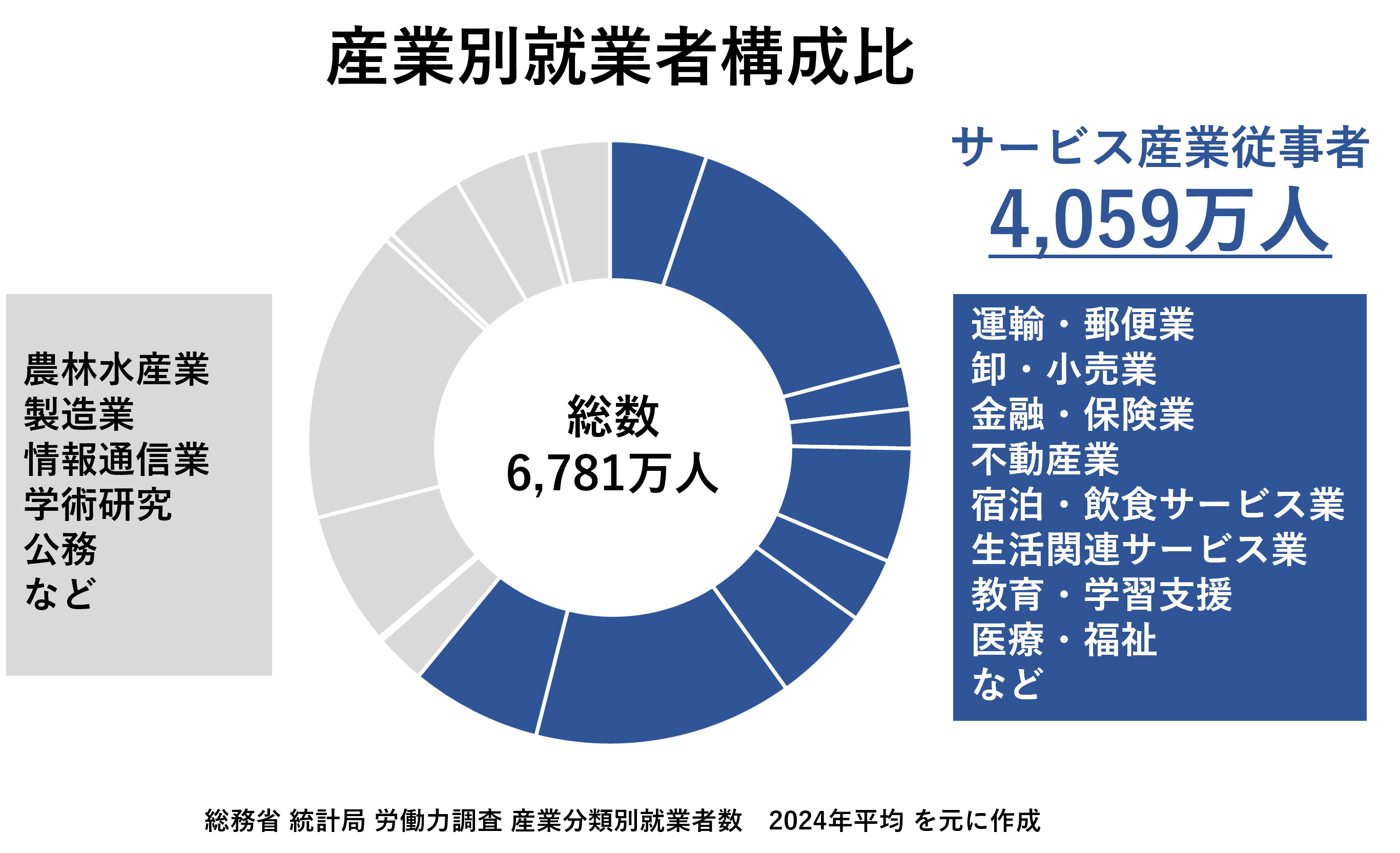 就業者全体の6割がサービス業従事者で占められる