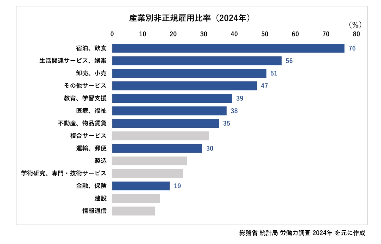 サービス業従事者の大部分は非正規社員で構成されている