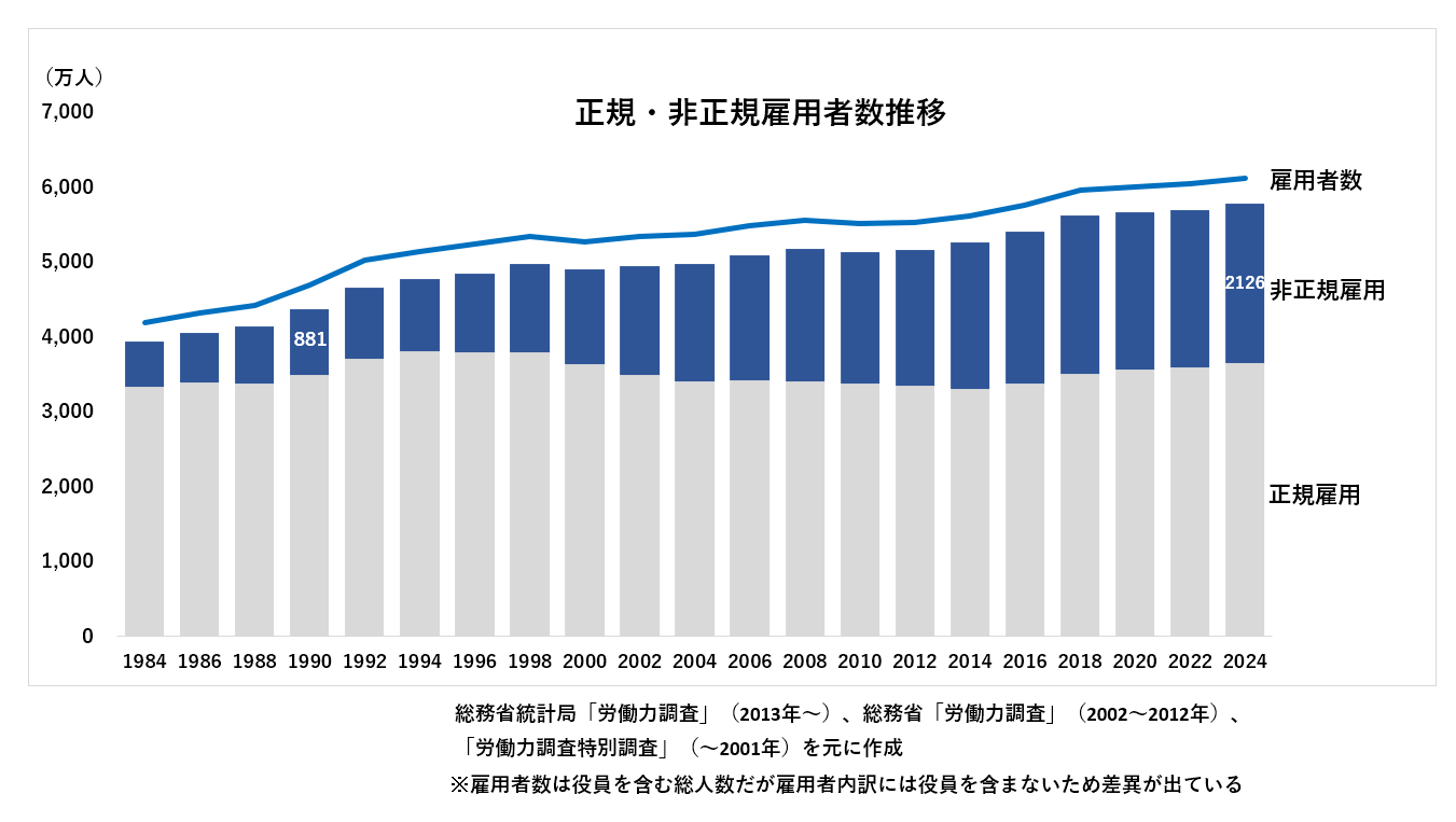 失われた30年という言葉が表すように、1990年時点で900万人に満たなかった非正規雇用者数は2024年には倍以上の2,100万人を突破しています。産業構造が変化し、そこで働く人たちの人種、年代、生活様式、価値観などが多様化した今、ワークライフバランスを保つなどの目的があった上で非正規雇用を選択する人が多く存在します。そのような状況にあっても、従業員の能力開発やスキルアップ、モチベーション管理、昇給制度などについて、正規雇用者同様に機会を設けている企業はまだまだ少ないと言わざるを得ません。ひとりひとりの能力、スキルなどを見える化し、価値を最大限に発揮できる環境をつくっていく必要があります。